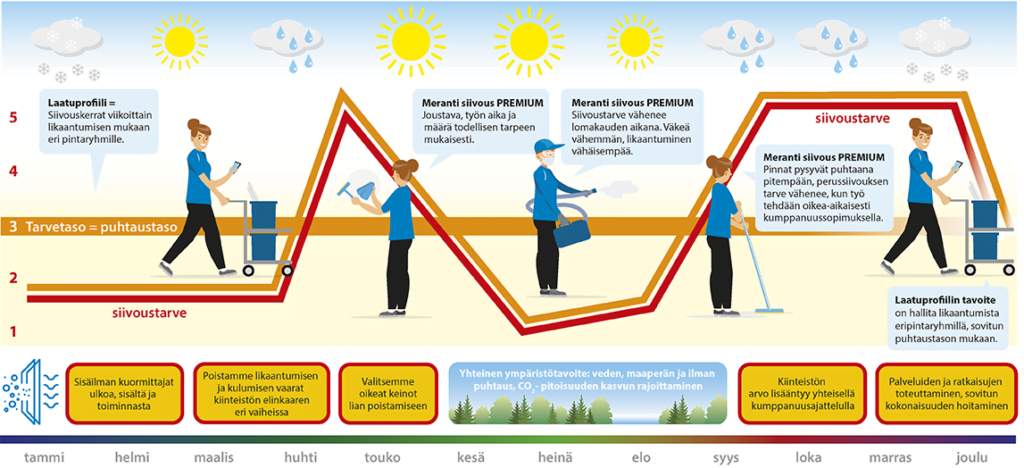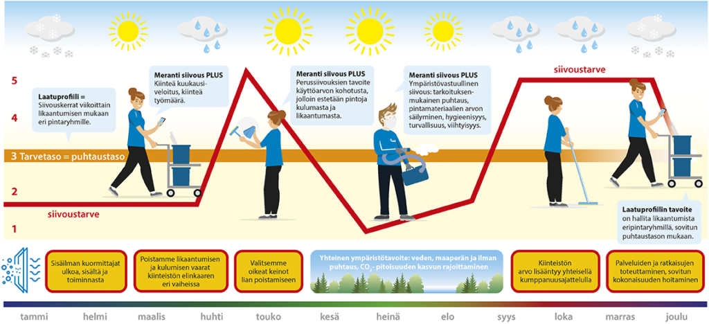 Meranti Siivous Plus sisältää puhtauspalvelujen toimittamisen kiinteään, ennalta sovittuun hintaan. Siivous toteutetaan yhdessä sovitun puhtaustason mukaisena ylläpitosiivouksena, keskittyen kunkin siivottavan kohteen tärkeimpiin asioihin. Meranti Siivous Plus soveltuu erityisesti asiakkaille, joiden siivoustarpeet pysyvät samoina, eivätkä vaihtele voimakkaasti esimerkiksi vuodenajan, kävijämäärän tai muun syyn johdosta.